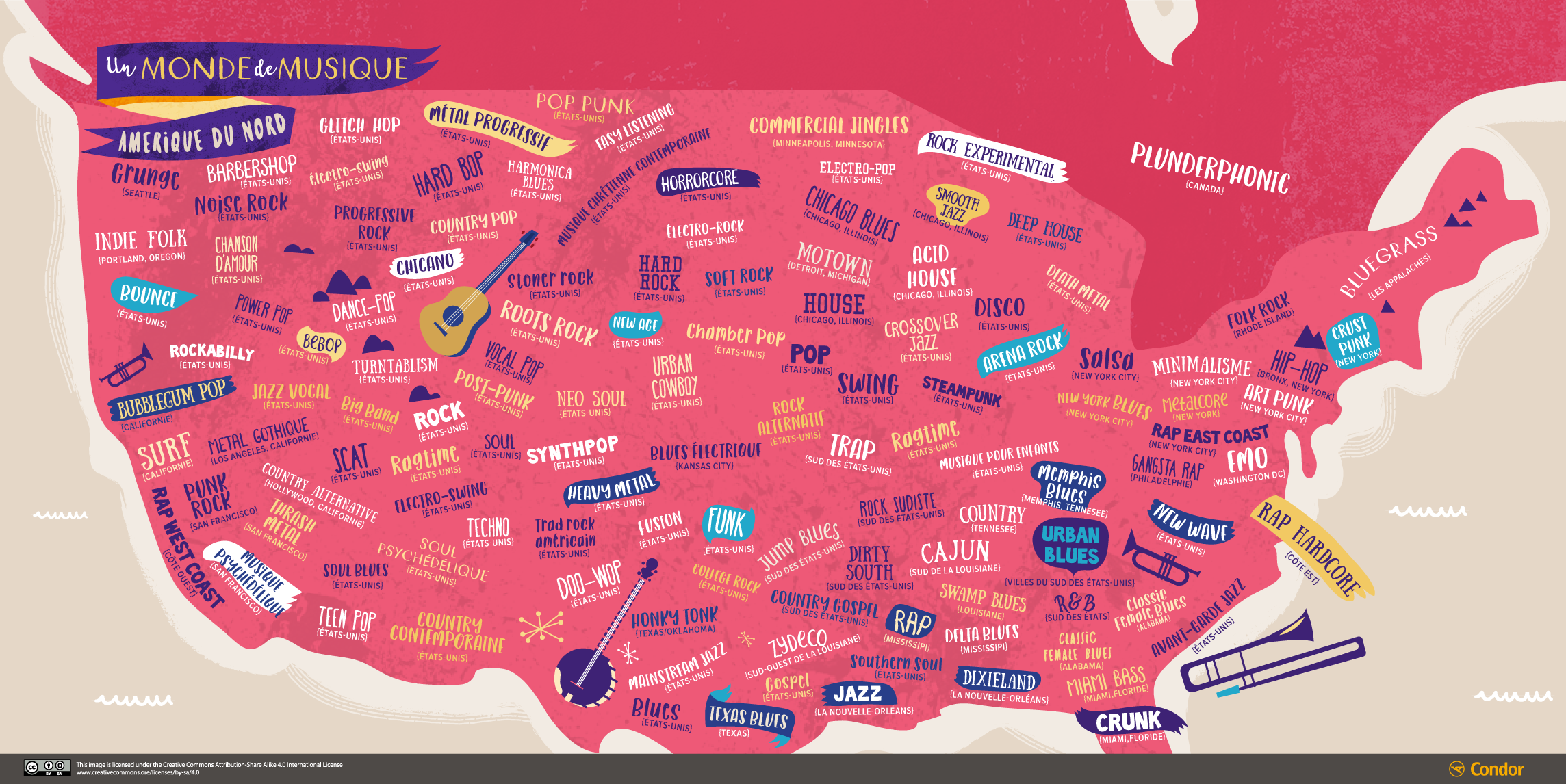 Cette étude réalisée par la compagnie aérienne Condor, indique où sont nés les différents styles musicaux existants.